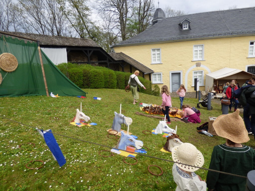 Der mittelalterliche Markt auf Schloss Homburg lässt Kinderherzen höher schlagen: Alles ist so bunt und wirbelig!
