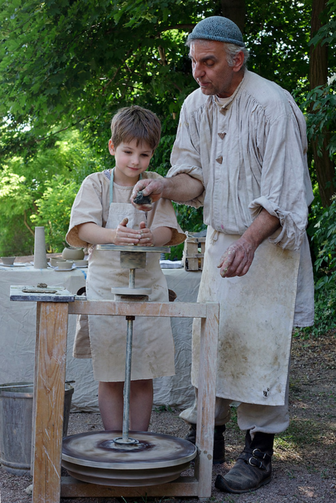 Mit mehreren Scheiben ist er angereist und vielen Besuchern ist er aus Kindertagen vertraut. Töpfermeister Udo freut sich darauf, viele fleißige Kinder in die Lehre zu nehmen. Staunend kann man dann erleben, wie aus dem weichen Klumpen Ton ein Krug von feinstem Ebenmaß entsteht.
